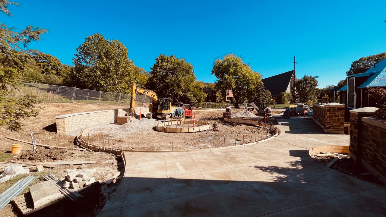 A very special circle inside a circle takes shape. Our campus has been lovingly designed to be, literally, a drawing from space which will unfold before your eyes as you stroll along the pathways. Early Oct. 2025.
